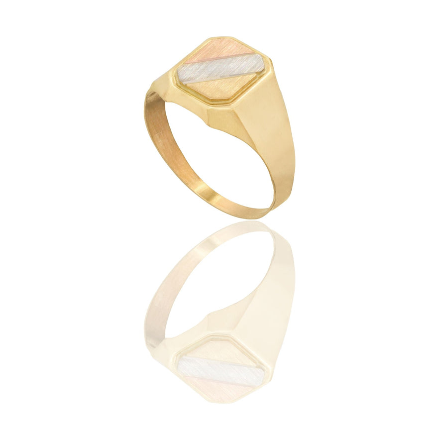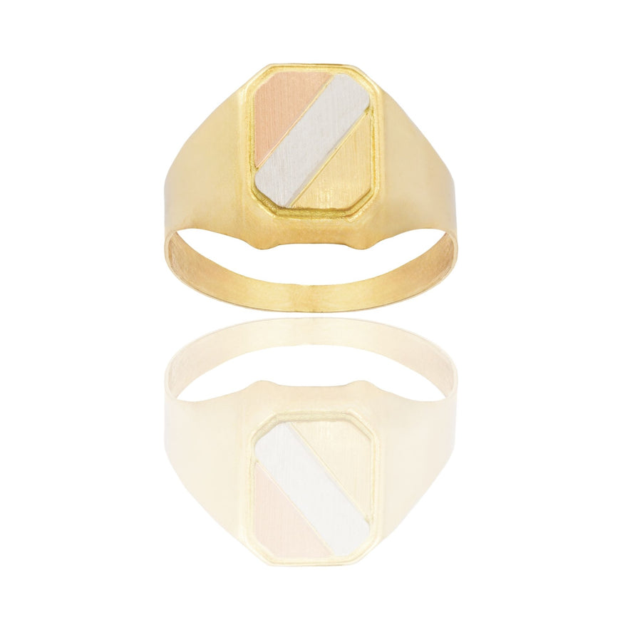 Anello in oro 3 COLORI Oro 18 carati Uomo Scudo Rettangolare Solo Oro Gr. 2