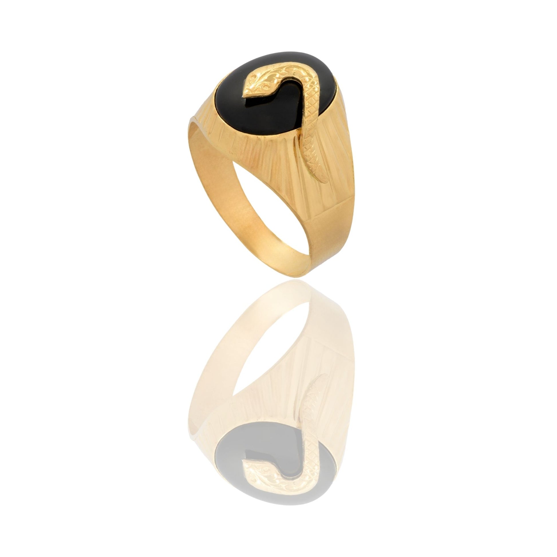 Anello in oro GIALLO Oro 18 carati Uomo Scudo Ovale Con Serpente Pietra Onice Gr. 6,6