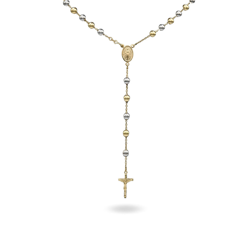 Collana in oro BICOLORE Oro 18 carati Rosario Modello Pendente Solo Oro Sfera mm. 6 Gr. 15