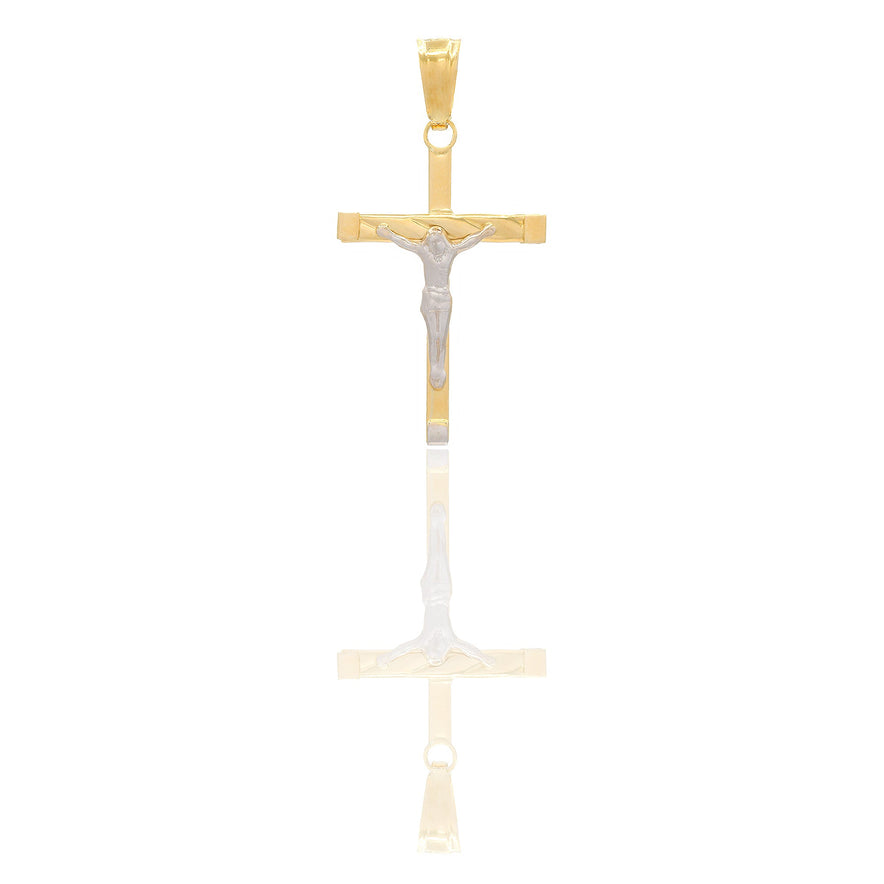 Ciondolo in oro BICOLORE Oro 18 carati Croce con Cristo rigata Solo oro 3,3 cm x 1,8cm Gr. 1,2