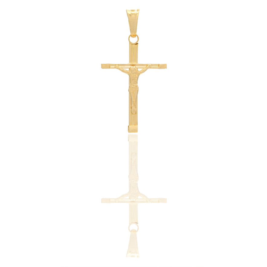 Ciondolo in oro GIALLO Oro 18 carati Croce con Cristo rigata Solo oro 3,3 cm x 1,8cm Gr. 1,15