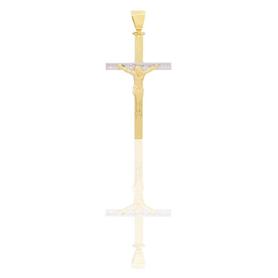 Ciondolo in oro BICOLORE Oro 18 carati Croce con Cristo martellata Solo oro 6,2cm x 3,1cm Gr. 4,8