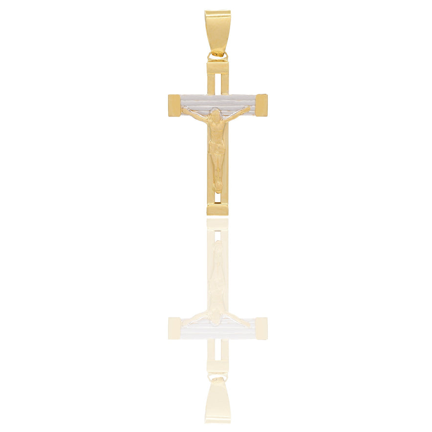 Ciondolo in oro BICOLORE Oro 18 carati Croce con Cristo traforata rigata Solo oro 3,7cm x 1,8cm Gr. 2,85
