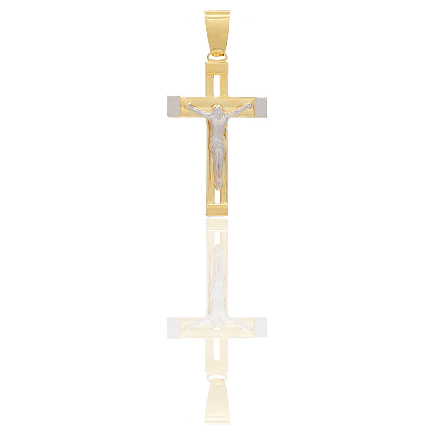 Ciondolo in oro BICOLORE Oro 18 carati Croce con Cristo traforata rigata Solo oro 3,7cm x 1,8cm Gr. 2,8
