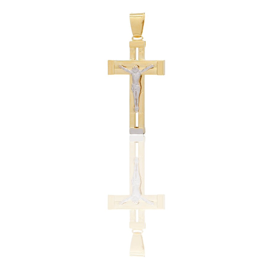 Ciondolo in oro BICOLORE Oro 18 carati Croce con Cristo traforata rigata Solo oro 4cm x 1,9cm Gr. 3,35