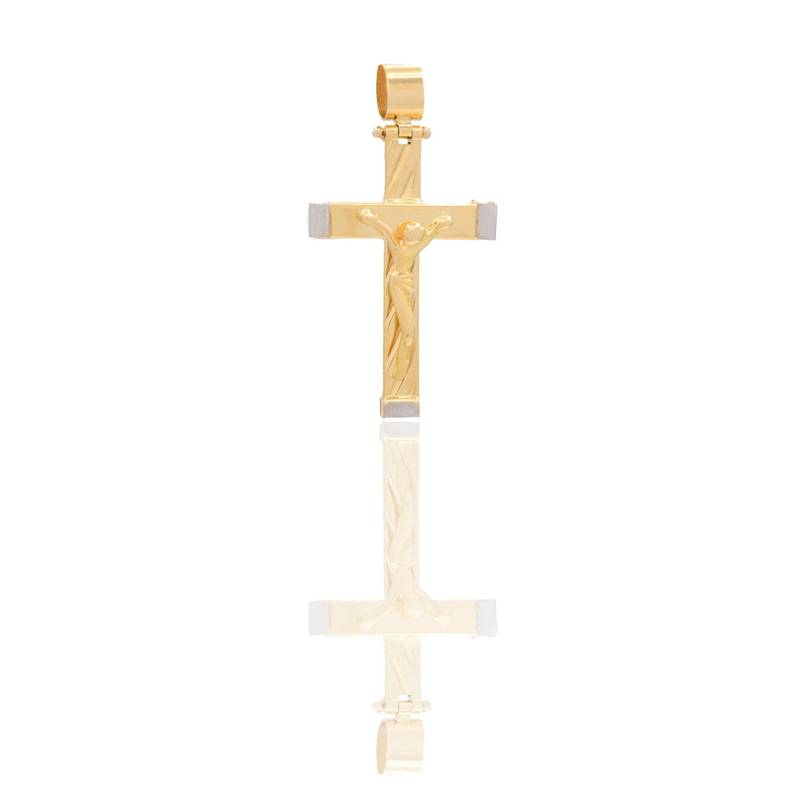 Ciondolo in oro BICOLORE Oro 18 carati Croce con cristo rigata Solo Oro 3,8cm x 2cm Gr. 3,05