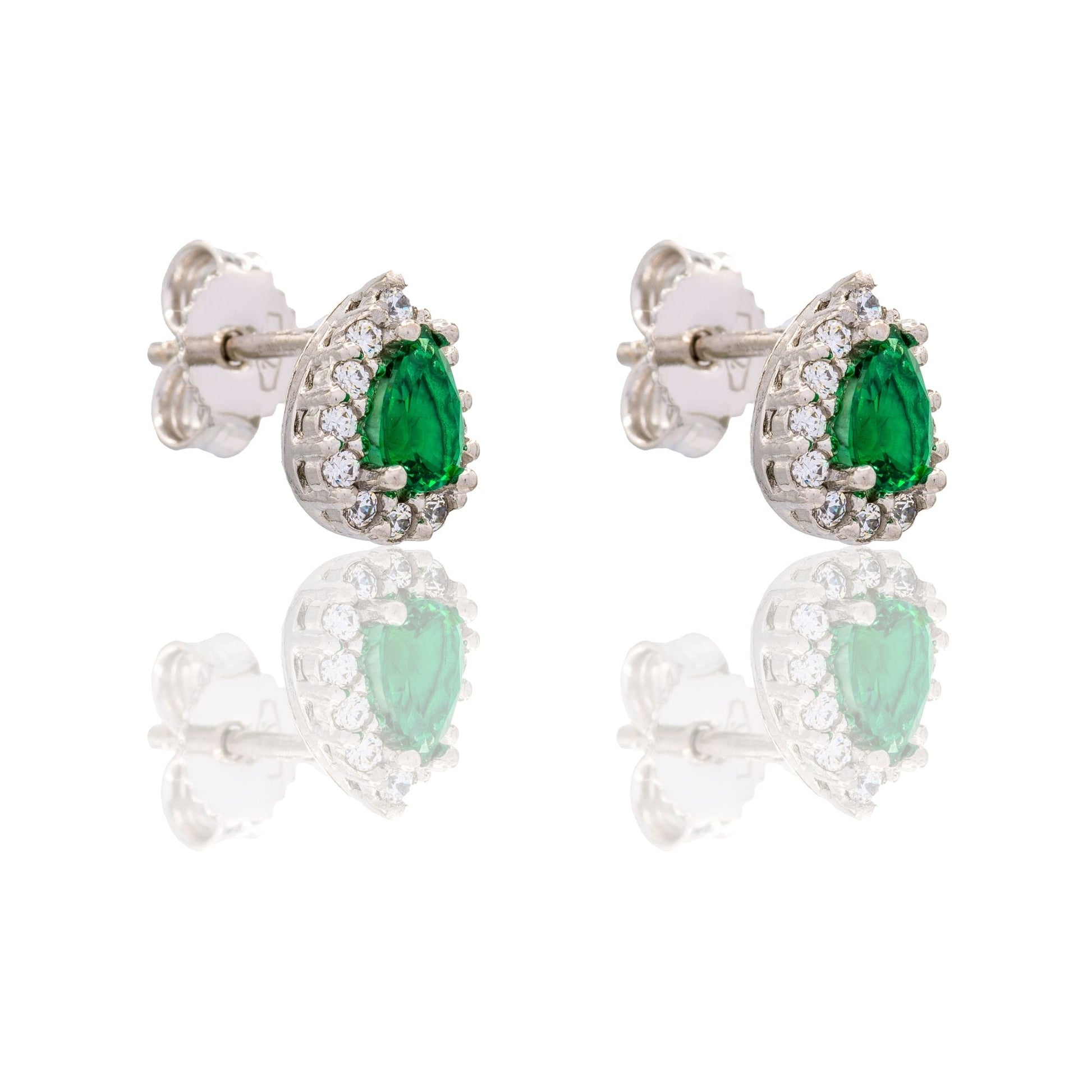 Orecchini in oro BIANCO Oro 18 carati Goccia Con Contorno Zircone Verde, Zirconi Bianchi Gr. 2,1