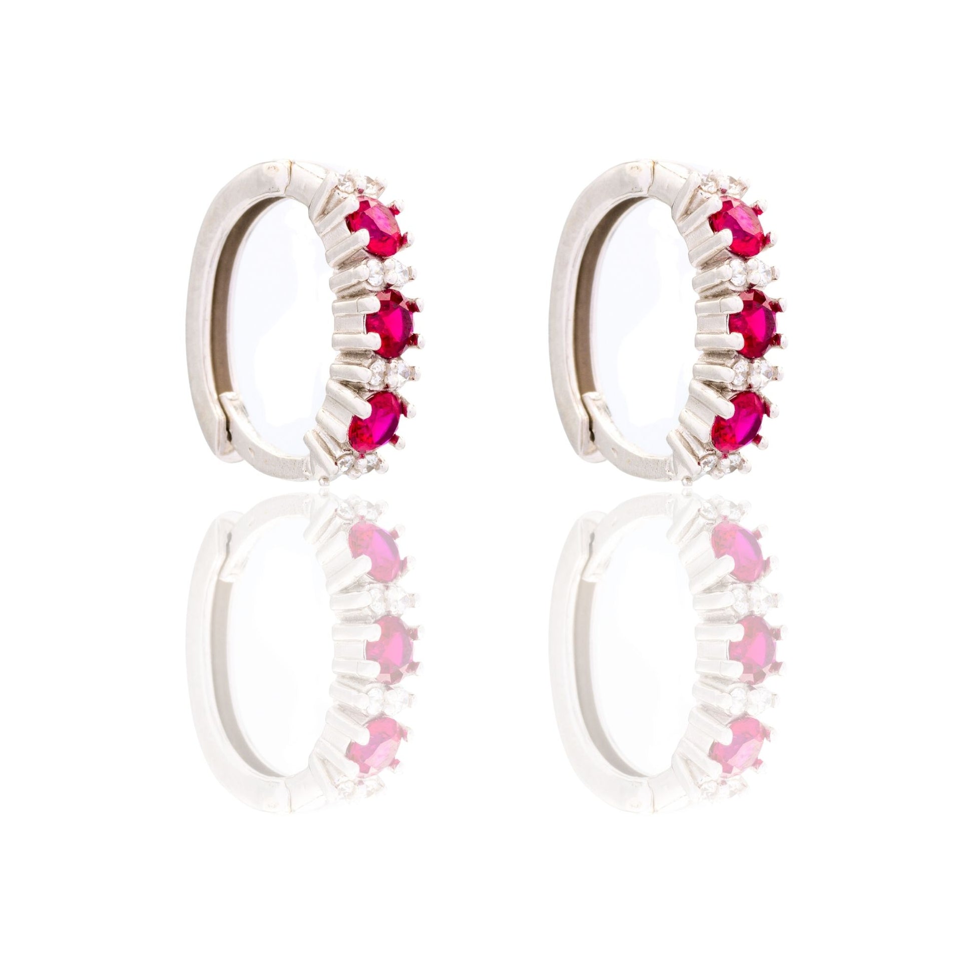 Orecchini in oro BIANCO Oro 18 carati Cerchietto Trilogy Zirconi Bianchi, Zirconi Rossi Gr. 2,8