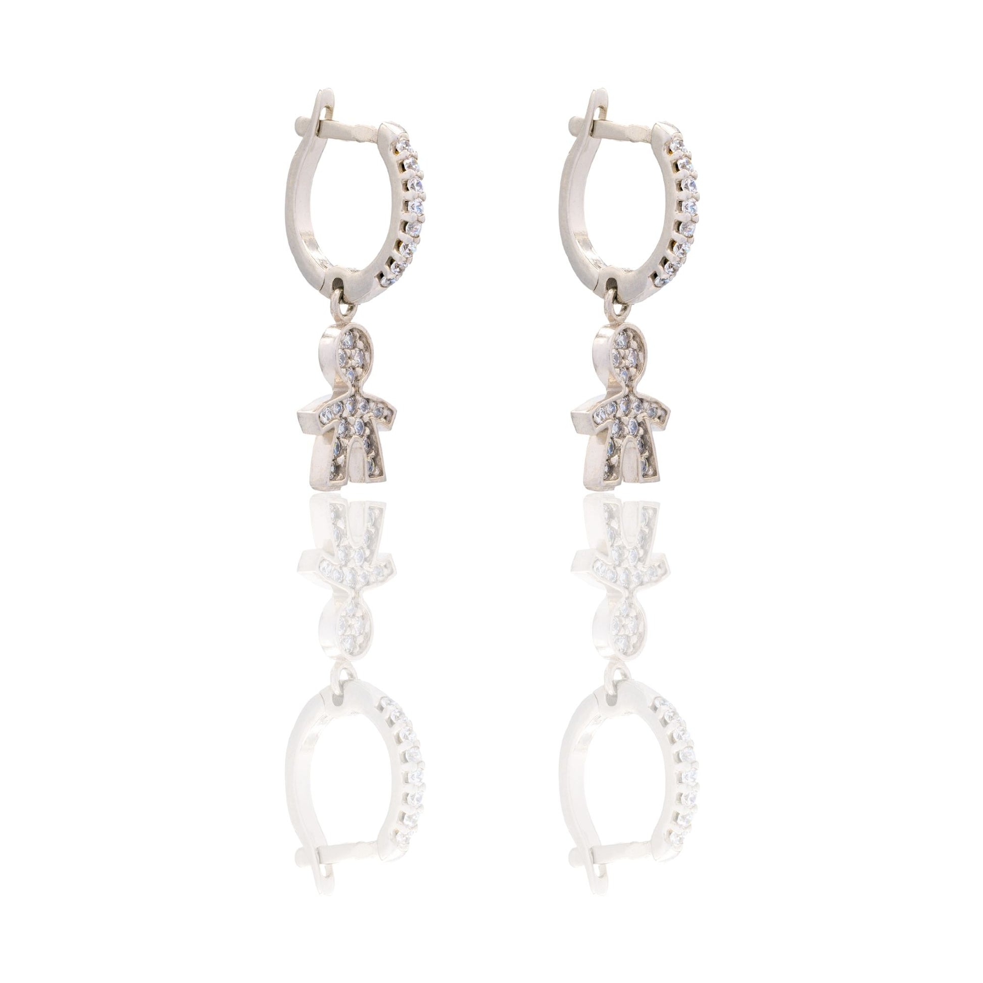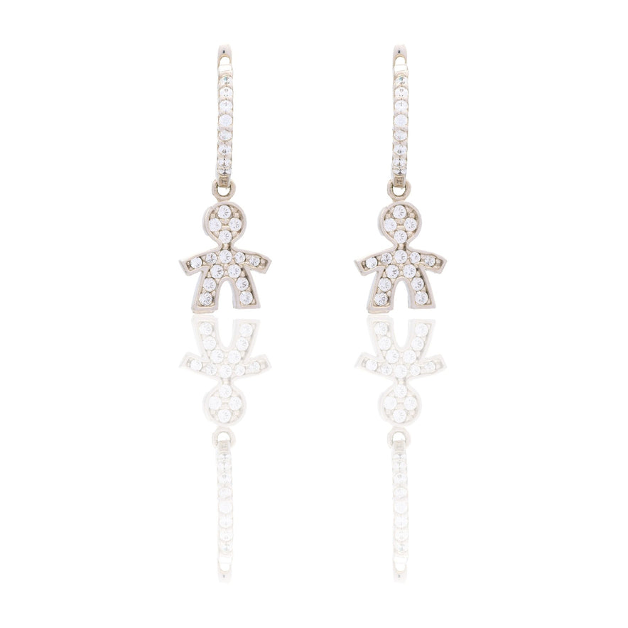Orecchini in oro BIANCO Oro 18 carati Cerchiett Con Bimbo Pavè Zirconi bianchi Gr. 3,05