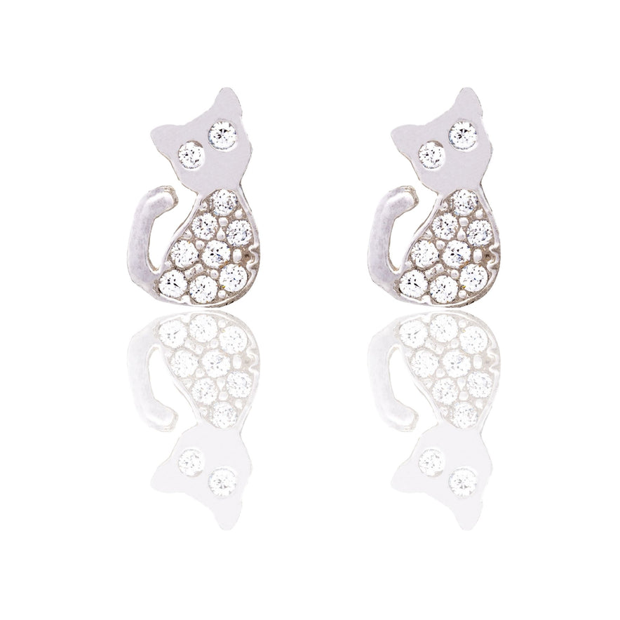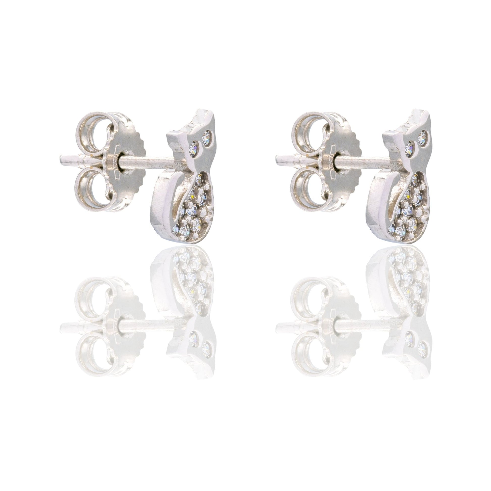 Orecchini in oro BIANCO Oro 18 carati Gattino Zirconi Bianchi Gr. 1,3