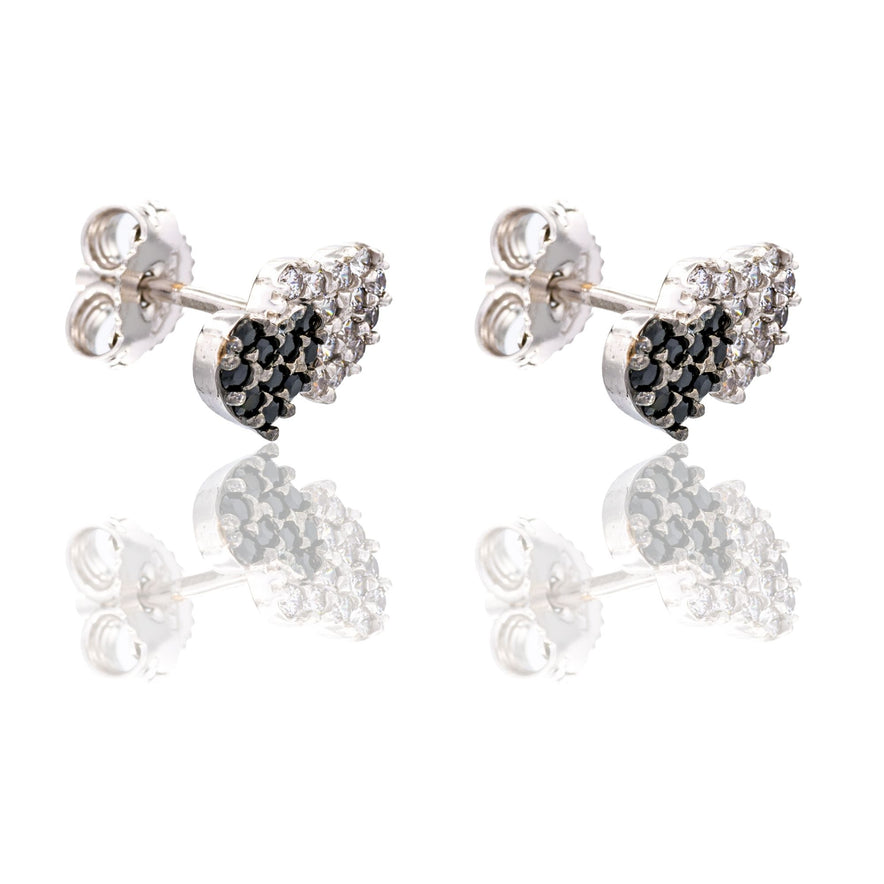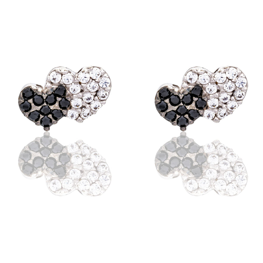 Orecchini in oro BIANCO Oro 18 carati Doppio Cuore Zirconi Bianchi, Zirconi Neri Gr. 1,7