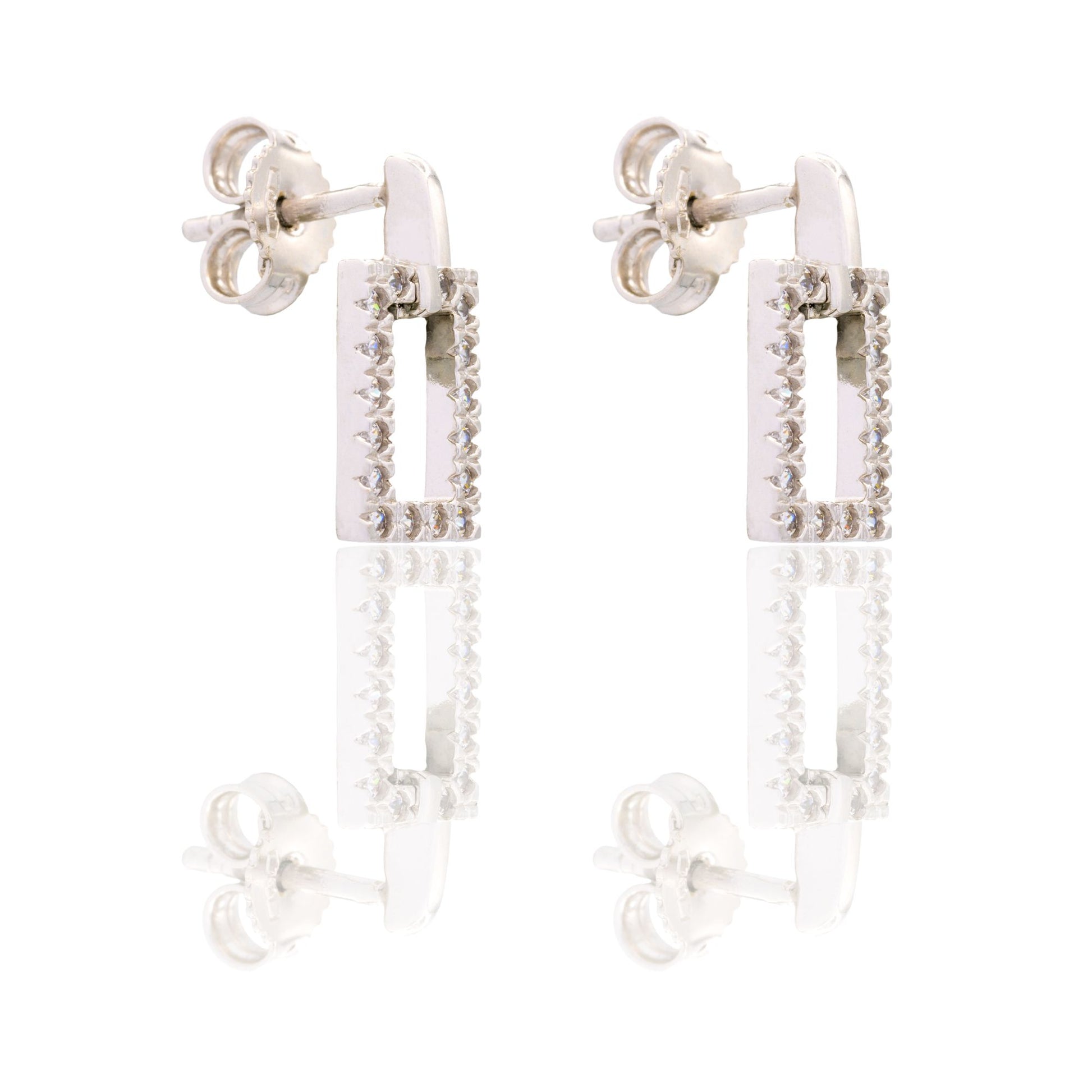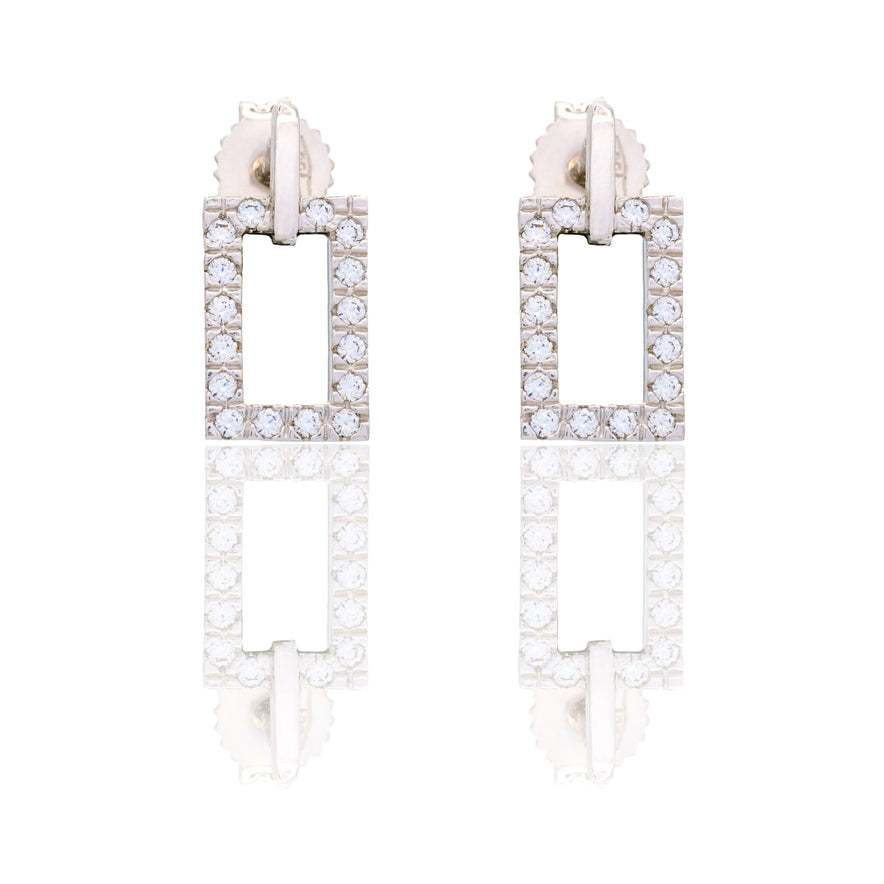 Orecchini in oro BIANCO Oro 18 carati Rettangolo Pendente Pavè Zirconi bianchi Gr. 2