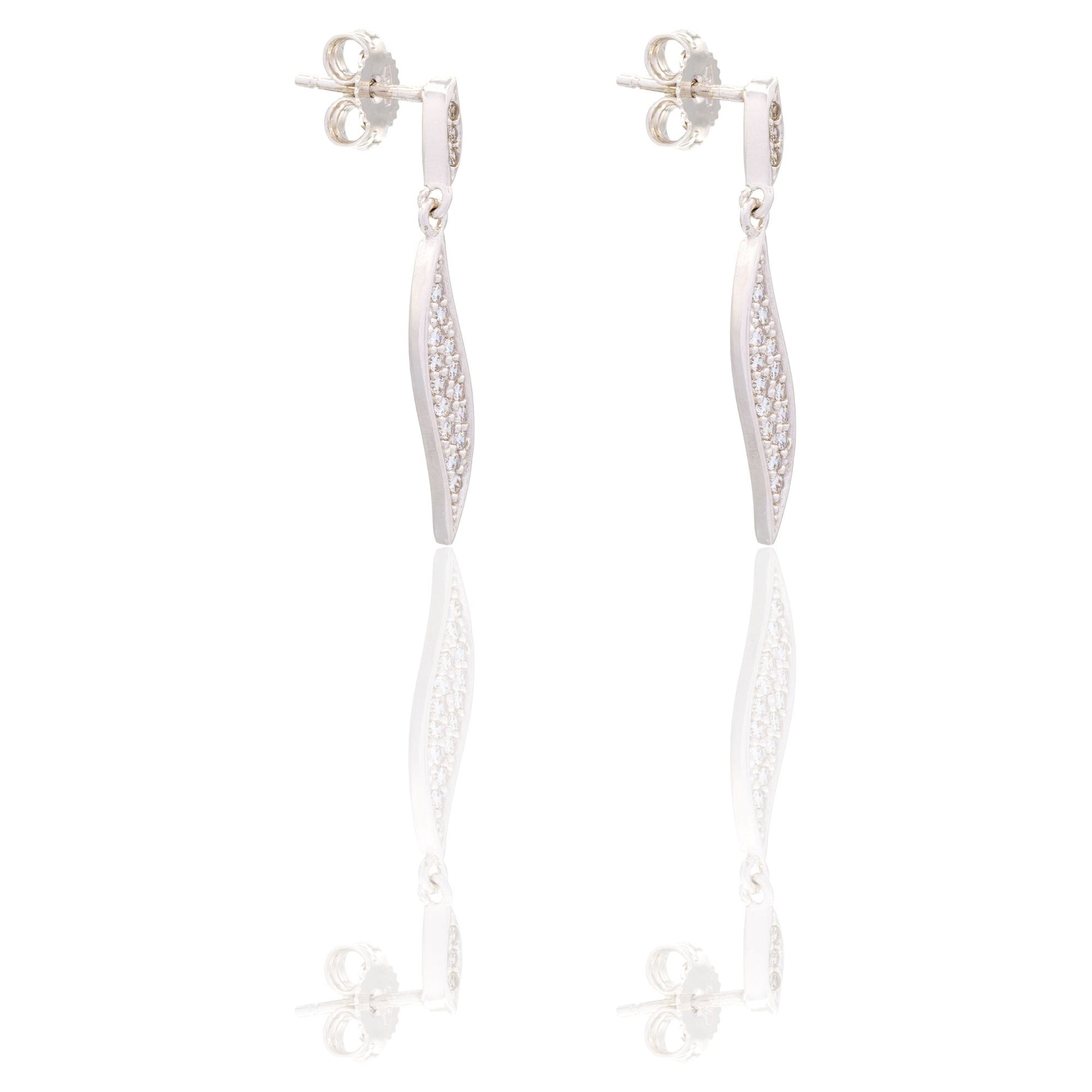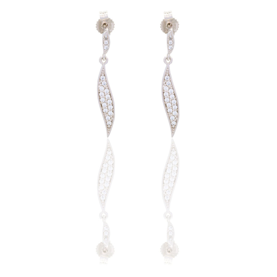 Orecchini in oro BIANCO Oro 18 carati Foglia Pendente Pavè Zirconi bianchi Gr. 2,5
