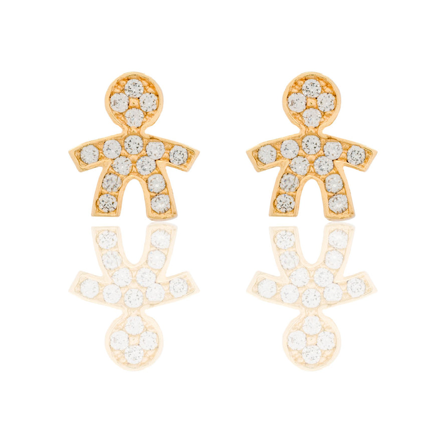 Orecchini in oro GIALLO Oro 18 carati Bimbo Pave' Pavè Zirconi bianchi Gr. 1,5
