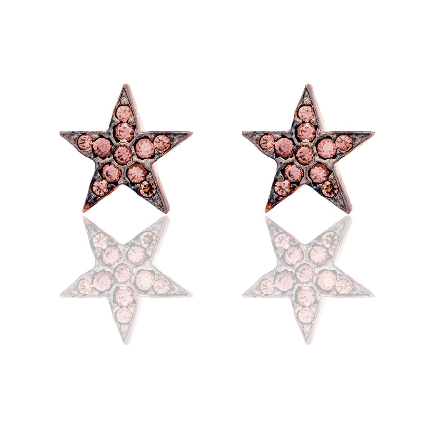 Orecchini in oro ROSA Oro 18 carati Stella Pave' Zirconi Neri, Pavè Zirconi Brown Gr. 1,5