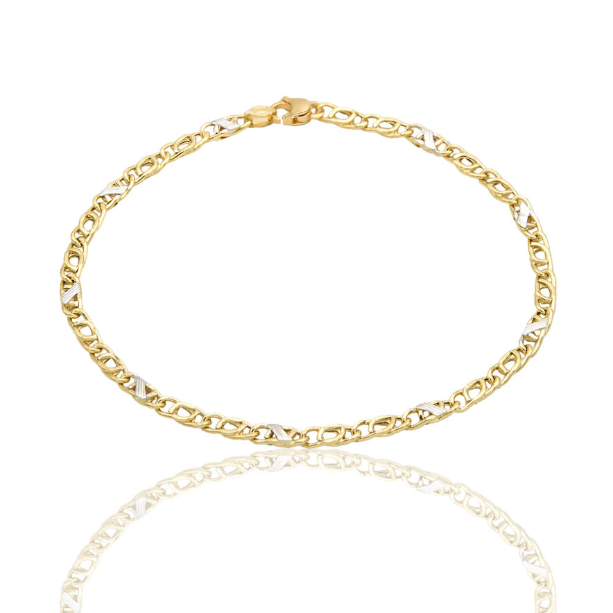 Bracciale in oro BICOLORE Oro 18 carati Catena Piatta Solo Oro cm. 21 Gr. 2,9
