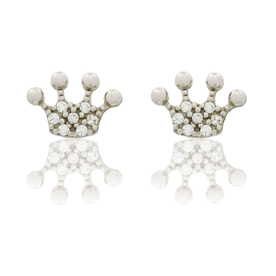 Orecchini in oro BIANCO Oro 18 carati Corona Pavè Zirconi bianchi Gr. 1,5