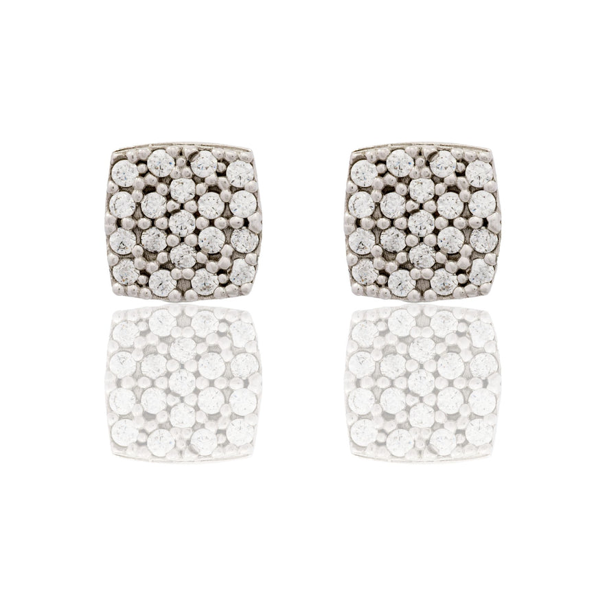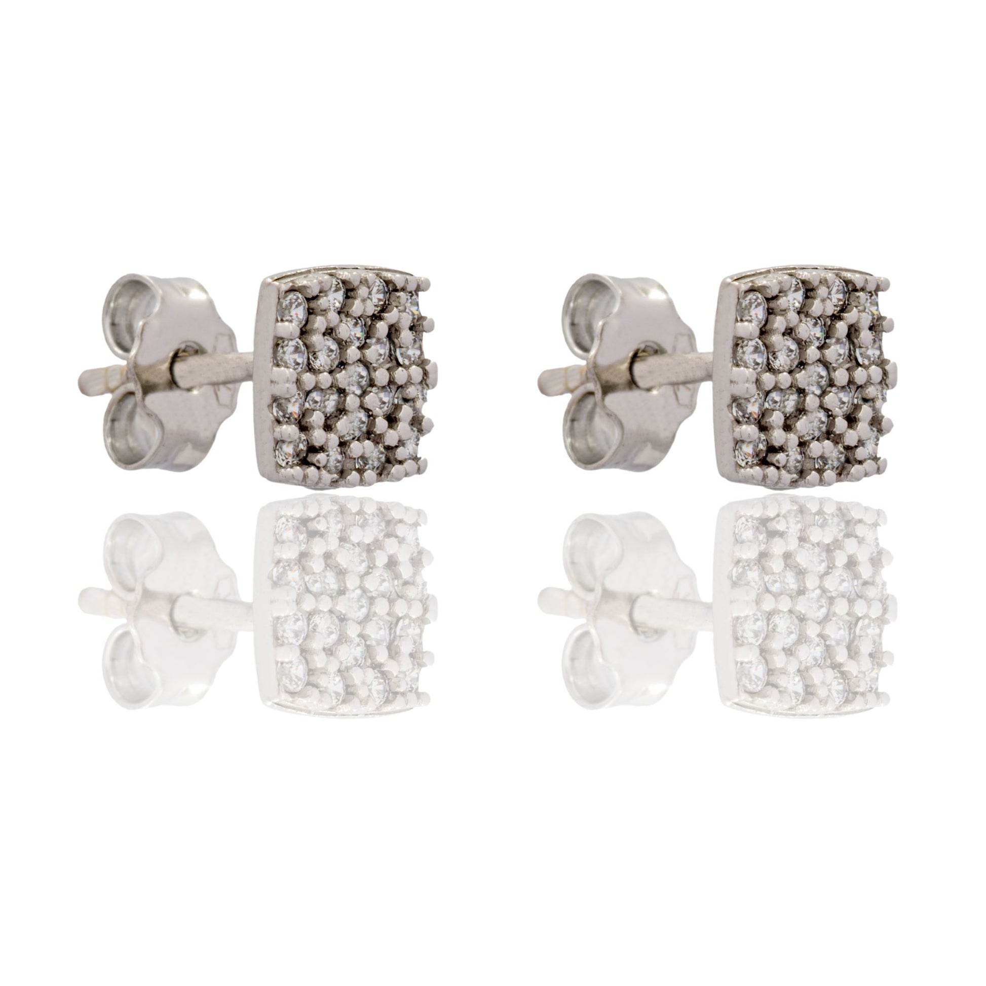 Orecchini in oro BIANCO Oro 18 carati Toppa Quadrata Pavè Zirconi bianchi Gr. 1,75