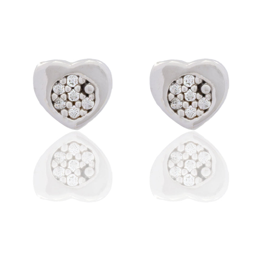 Orecchini in oro BIANCO Oro 18 carati Cuore Cerchio Con Centro Zirconi Bianchi Gr. 1,35