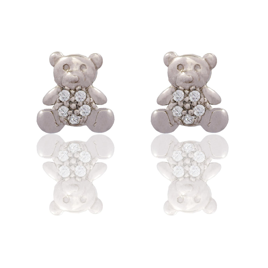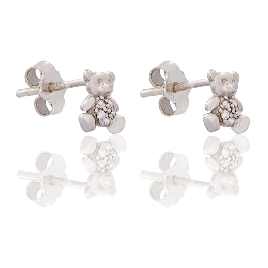 Orecchini in oro BIANCO Oro 18 carati Orsacchiotto Zirconi Bianchi Gr. 1,6
