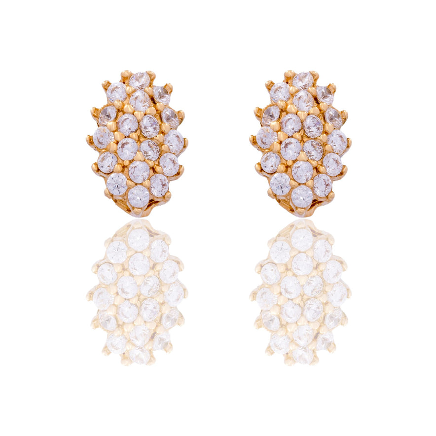 Orecchini in oro GIALLO Oro 18 carati Toppa Ovale Zirconi Bianchi Gr. 0,65