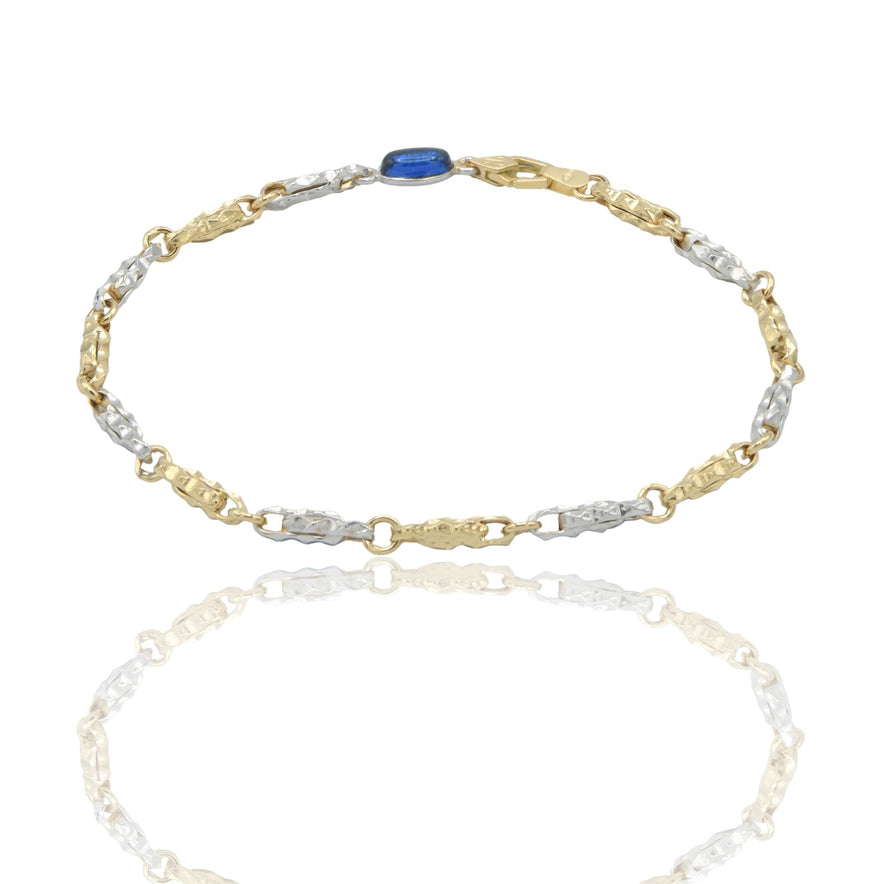 Bracciale in oro BICOLORE Oro 18 carati Catena alternata pietra blu cm. 21,5 Gr. 3,7