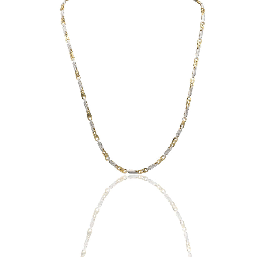 Collana in oro BICOLORE Oro 18 carati Girocollo catena schiacciata liscia e puntinata Solo Oro Gr. 8