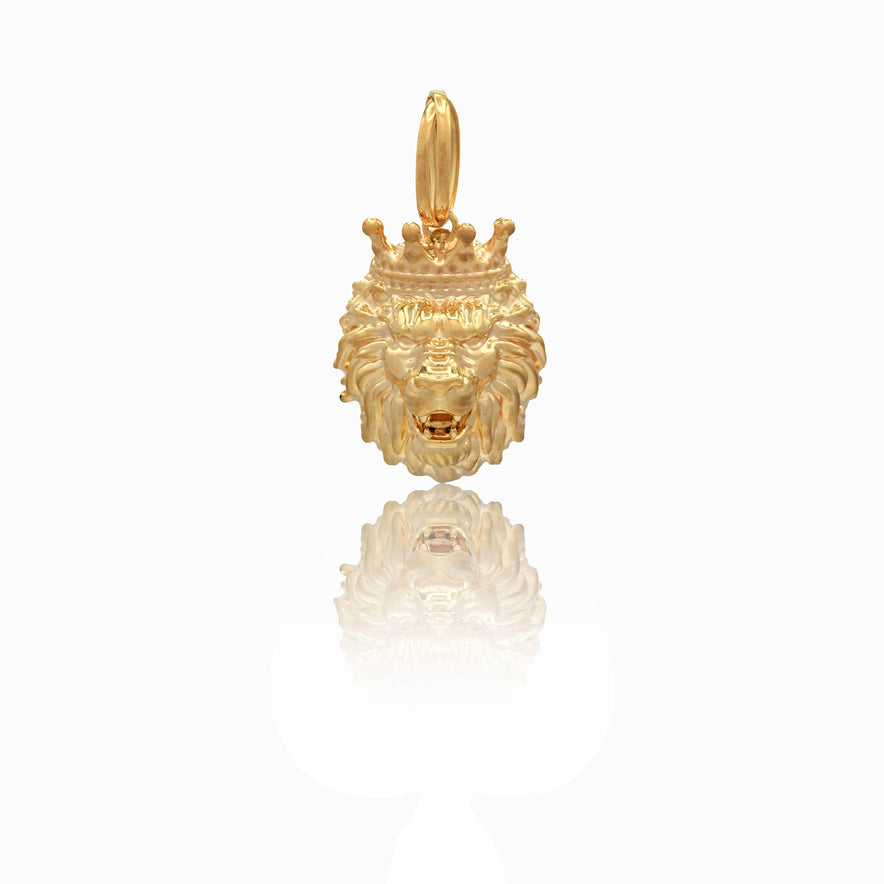 Ciondolo Oro Giallo Oro 18 carati Testa Leone con Corona elettroformata Solo Oro MIS.1