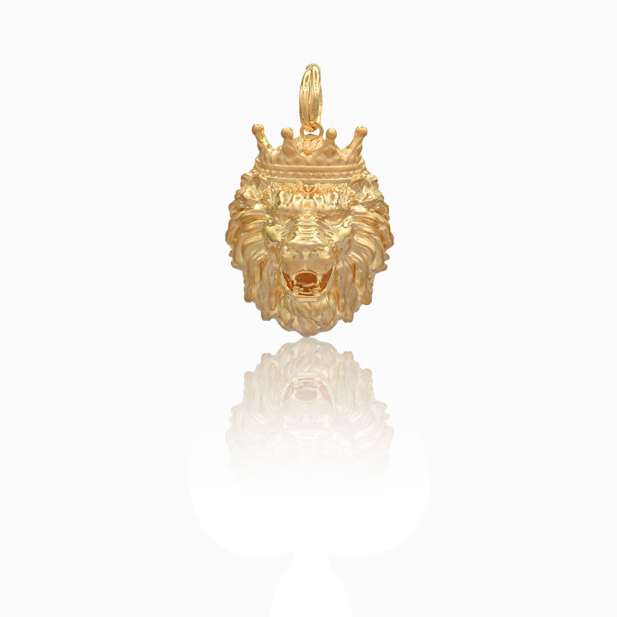 Ciondolo Oro Giallo Oro 18 carati Testa Leone con Corona elettroformata Solo Oro MIS.3
