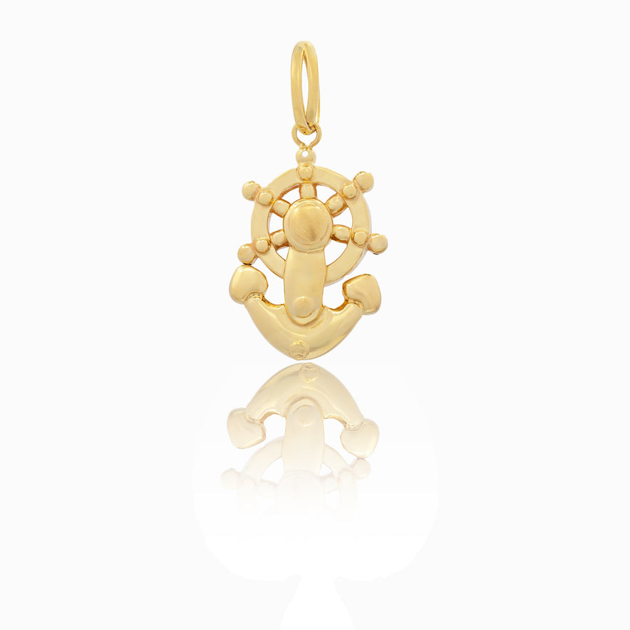 Ciondolo in oro GIALLO Oro 18 carati Ancora con Timone elettroformata Solo Oro lunghezza cm. 4,5 larghezza cm. 2 spessore 8,6 mm Gr. 4,45