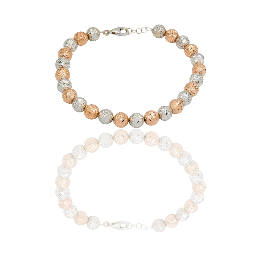 Bracciale in oro BICOLORE Oro 18 carati Milleluci Solo Oro Lunghezza cm.21 sfera mm. 8 Gr. 12,5