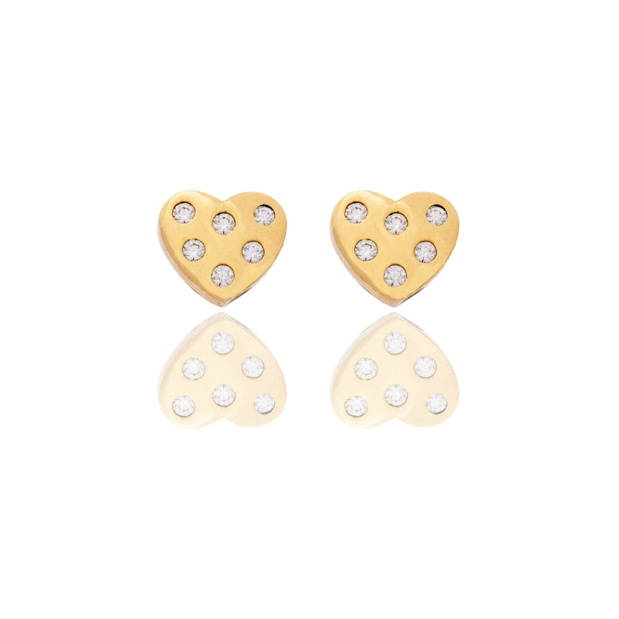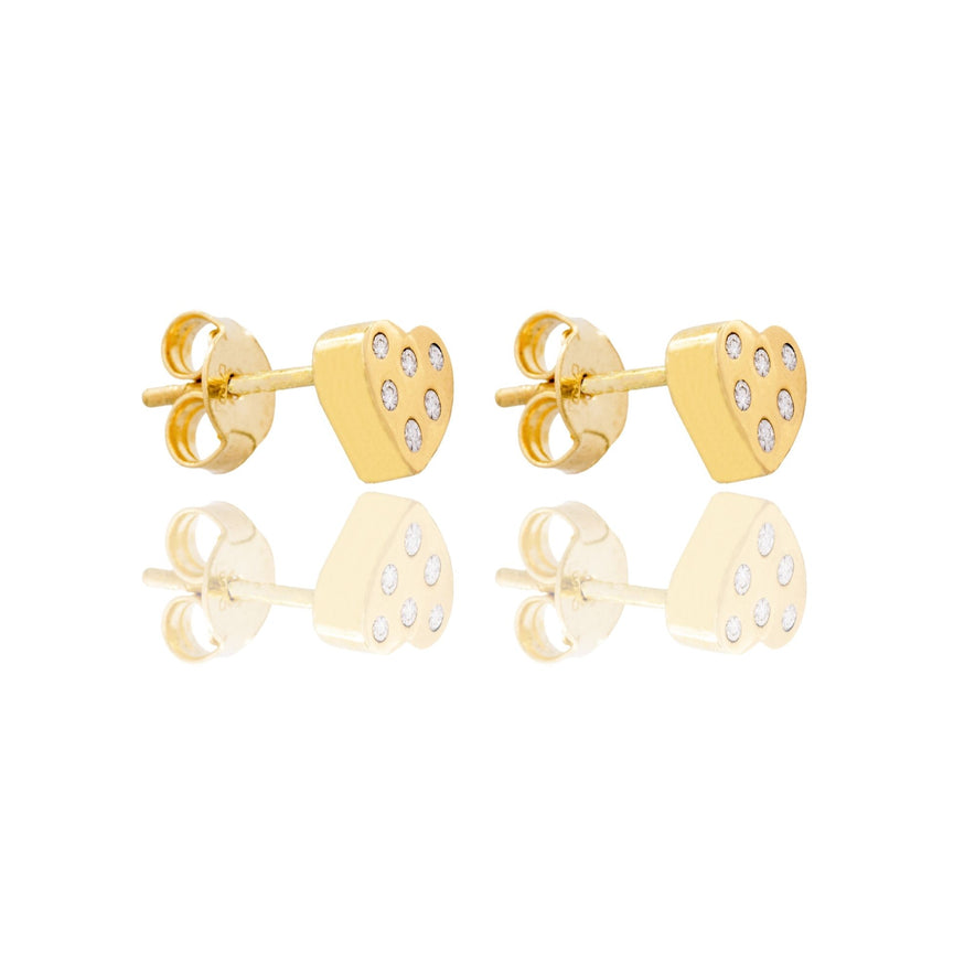 Orecchini in oro GIALLO Oro 18 carati Cuore Bombato Zirconi Bianchi Gr. 2