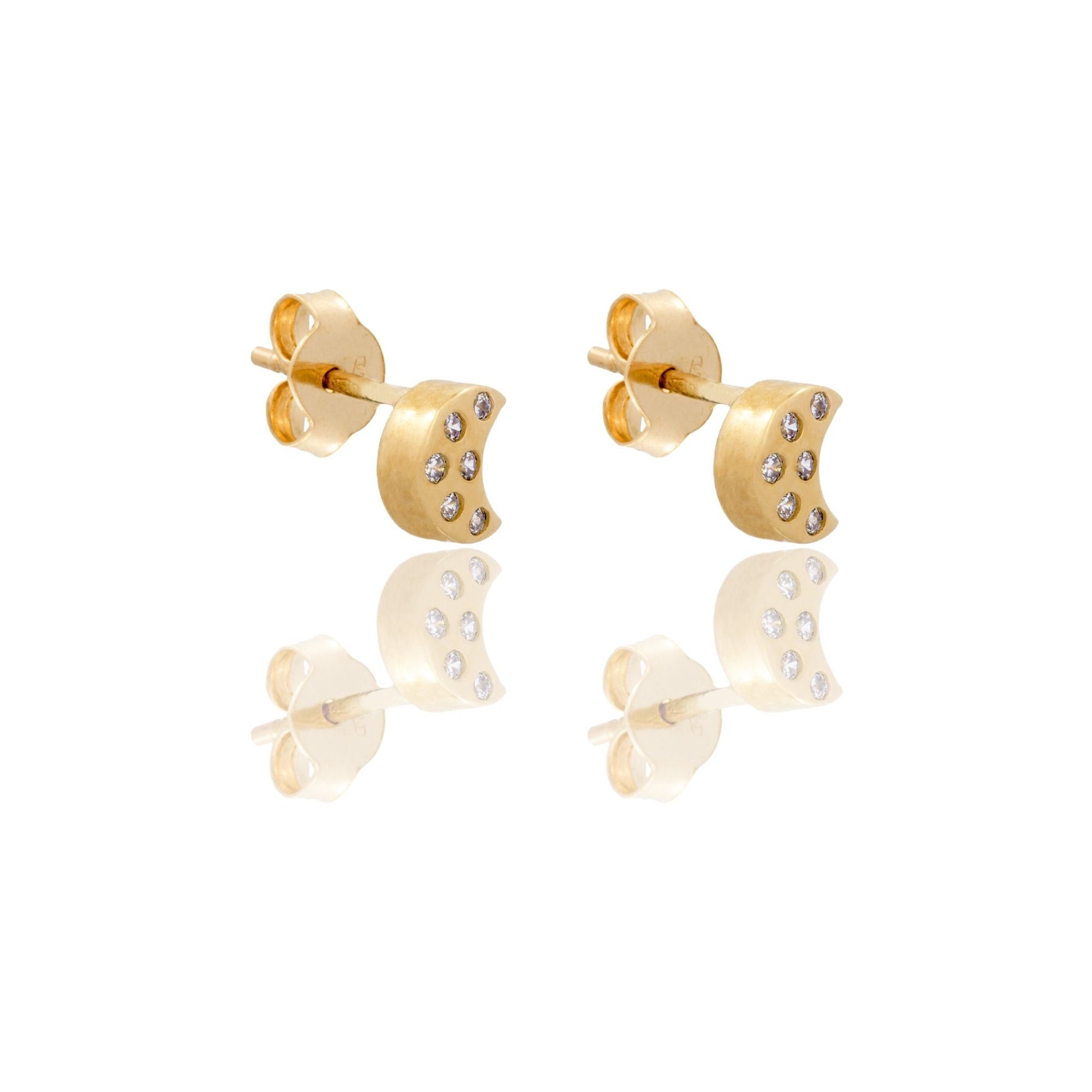 Orecchini in oro GIALLO Oro 18 carati Luna Bombata Zirconi Bianchi Gr. 2