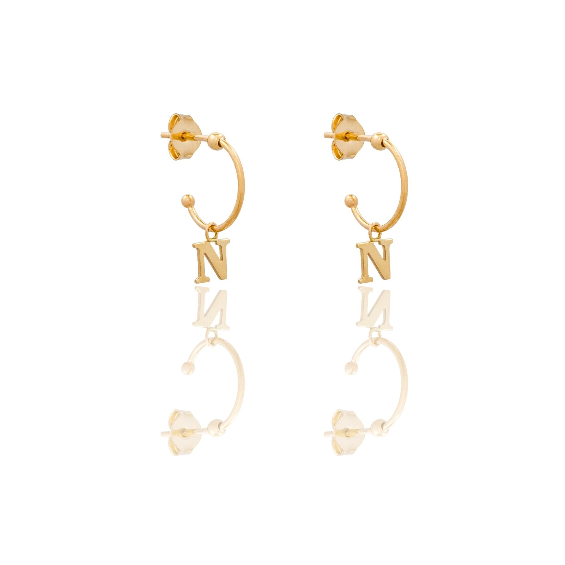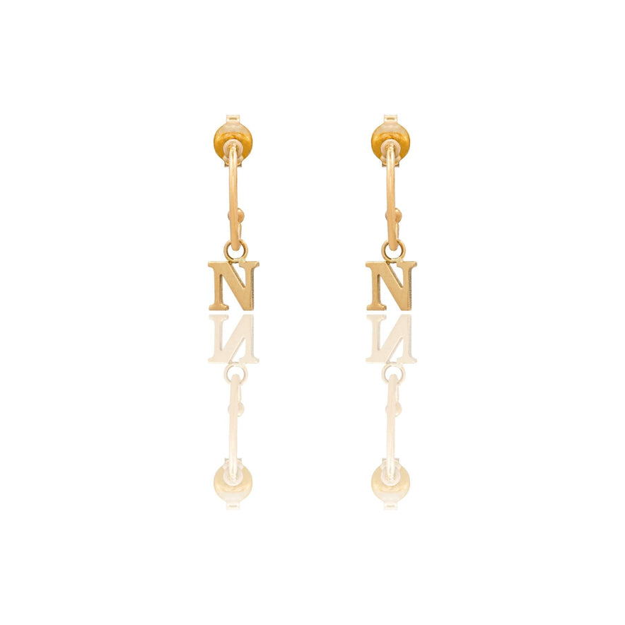 Orecchini in oro GIALLO Oro 18 carati Cerchietto Con Lettera N Solo Oro Gr. 1,75