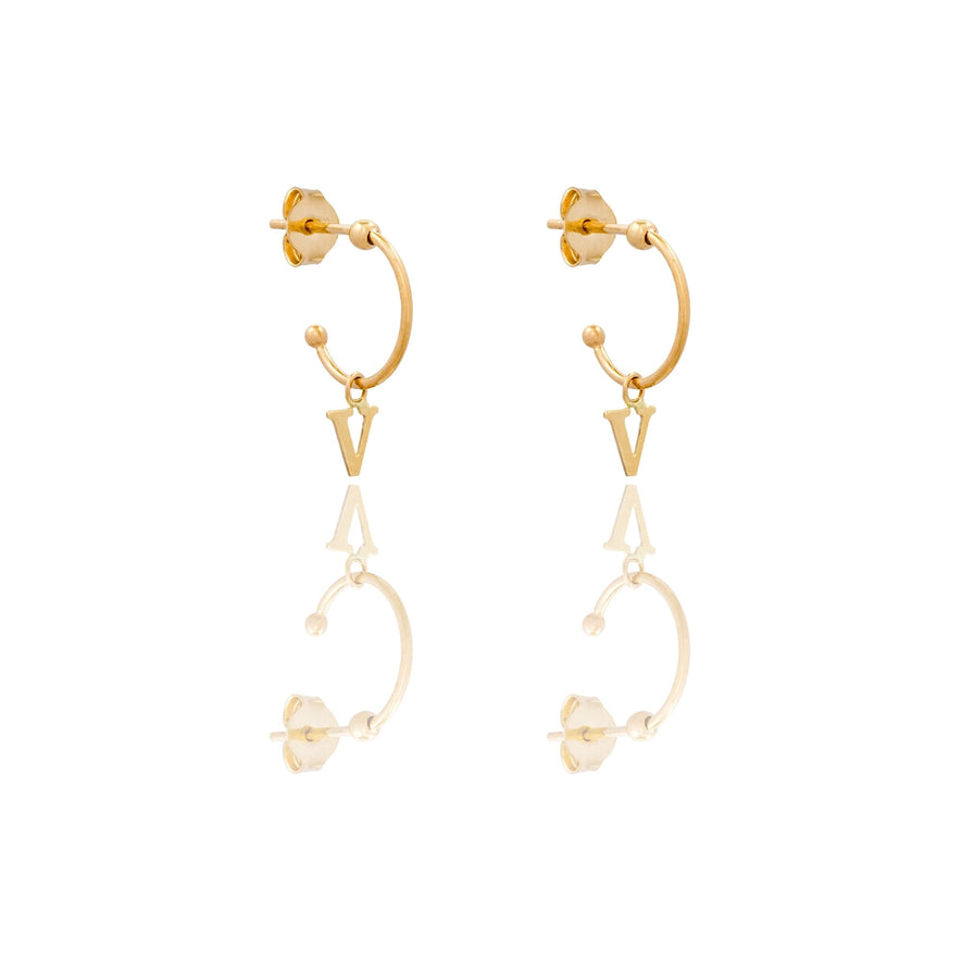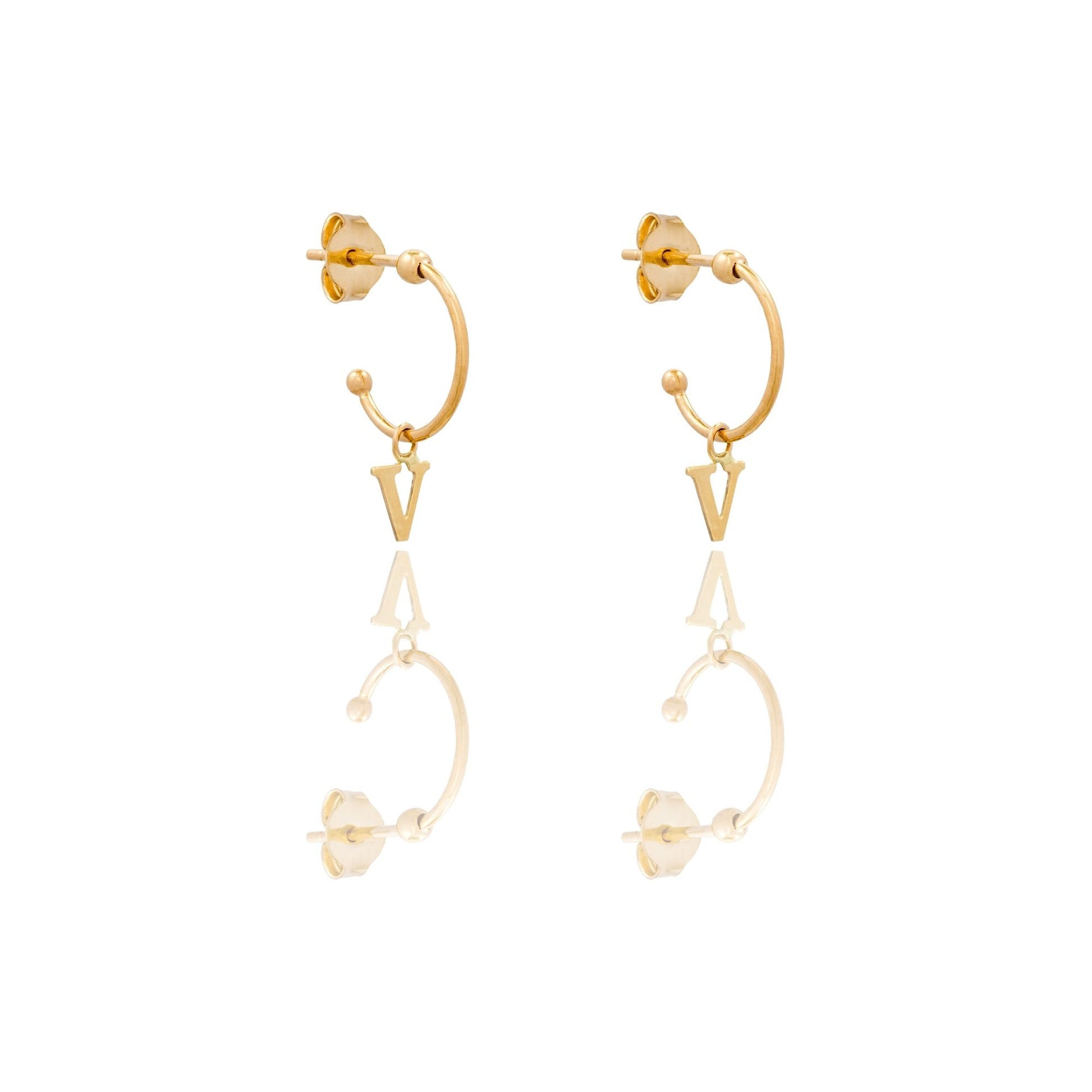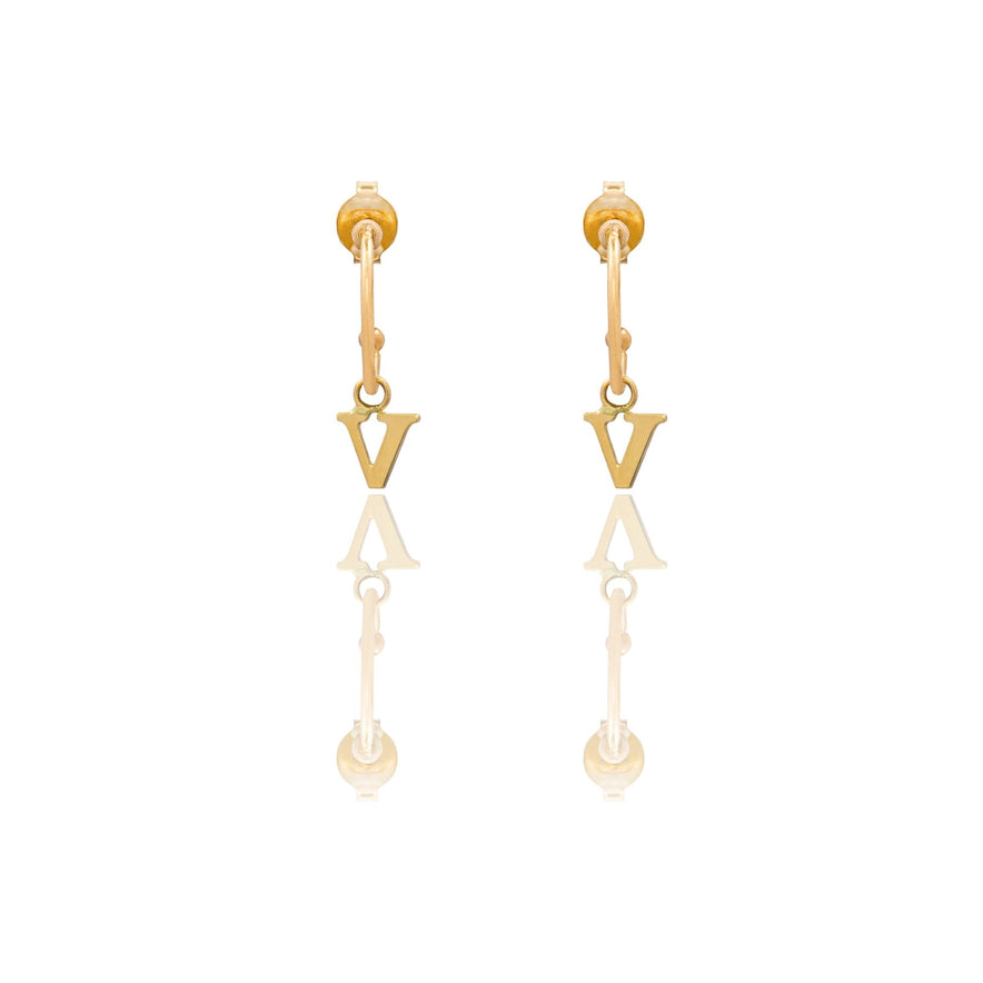 Orecchini in oro GIALLO Oro 18 carati Cerchietto Con Lettera V Solo Oro Gr. 1,75