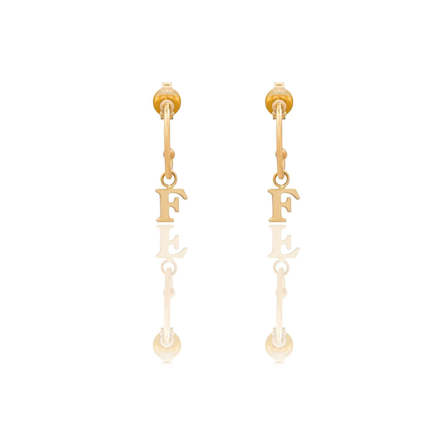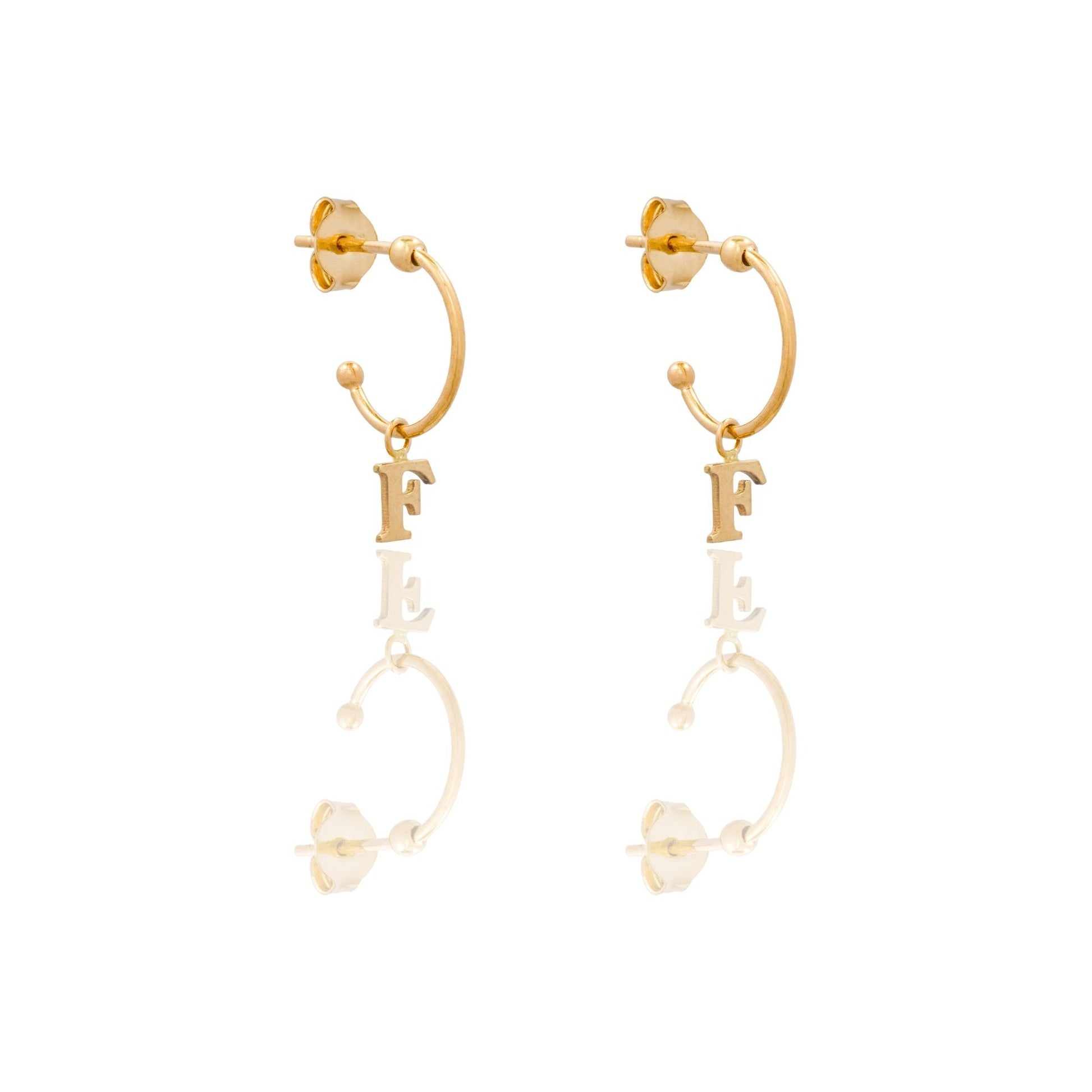 Orecchini in oro GIALLO Oro 18 carati Cerchietto Con Lettera F Solo Oro Gr. 1,75
