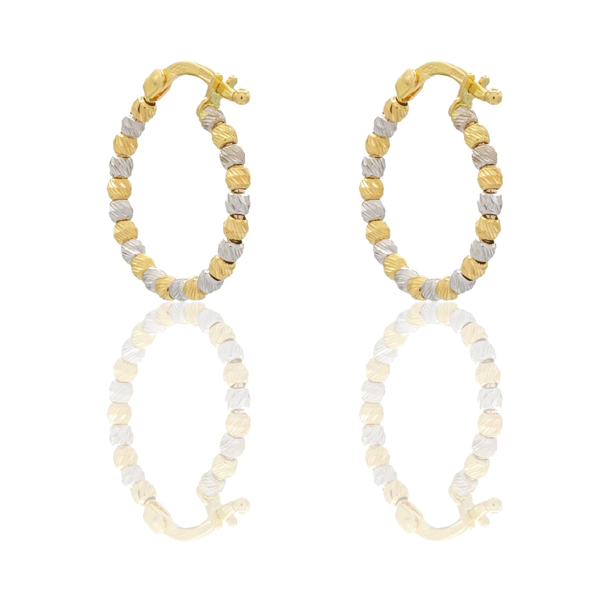 Orecchini in oro BICOLORE Oro 18 carati Cerchi Slash Solo Oro diametro esterno cm.1,5 diametro sfera mm.2 Gr. 1,75