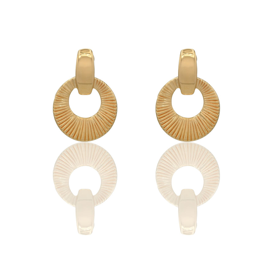 Orecchini in oro GIALLO Oro 18 carati Cerchio Pendente Lavorato Solo Oro Gr. 8,9