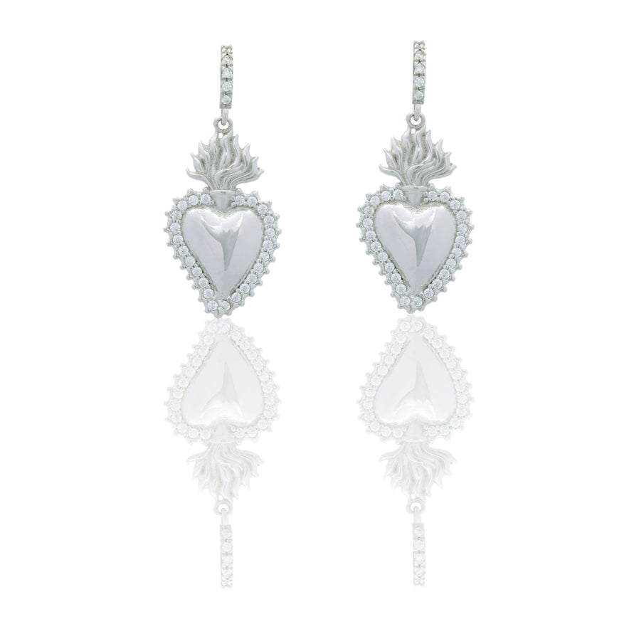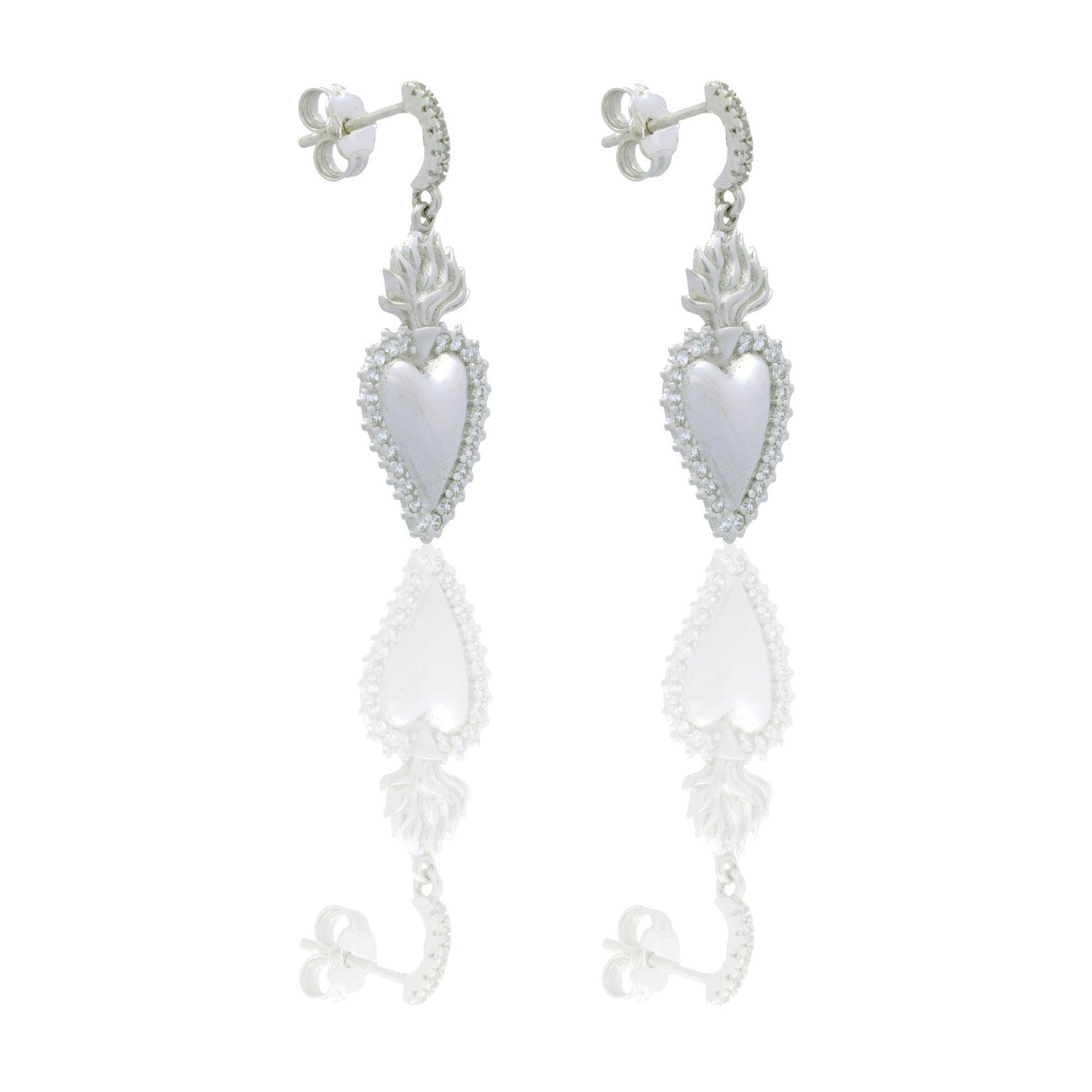 Orecchini in oro BIANCO Oro 18 carati Cuore Sacro Zirconi Bianchi Gr. 4,4