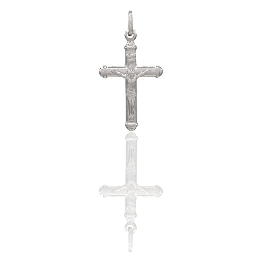 Ciondolo in oro BIANCO Oro 18 carati Croce Cristo bombata Solo Oro Gr. 1,3