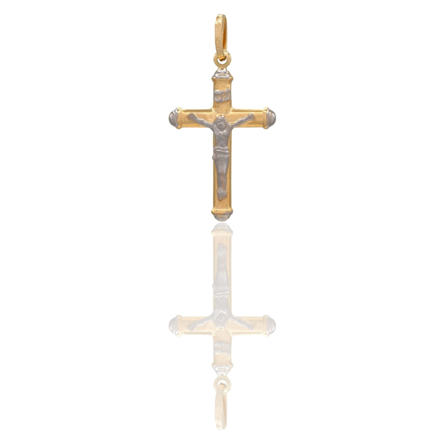 Ciondolo in oro BICOLORE Oro 18 carati Croce Cristo bombata Solo Oro Gr. 5,2