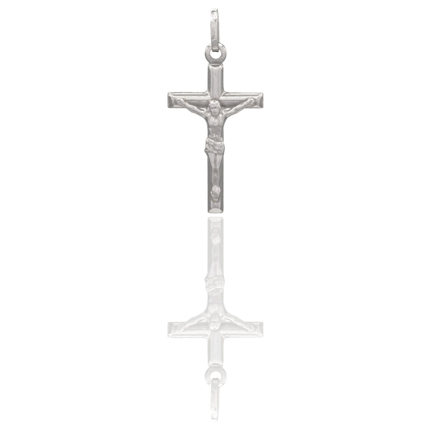 Ciondolo in oro BIANCO Oro 18 carati Croce Cristo Tubolare Solo Oro Gr. 1,9
