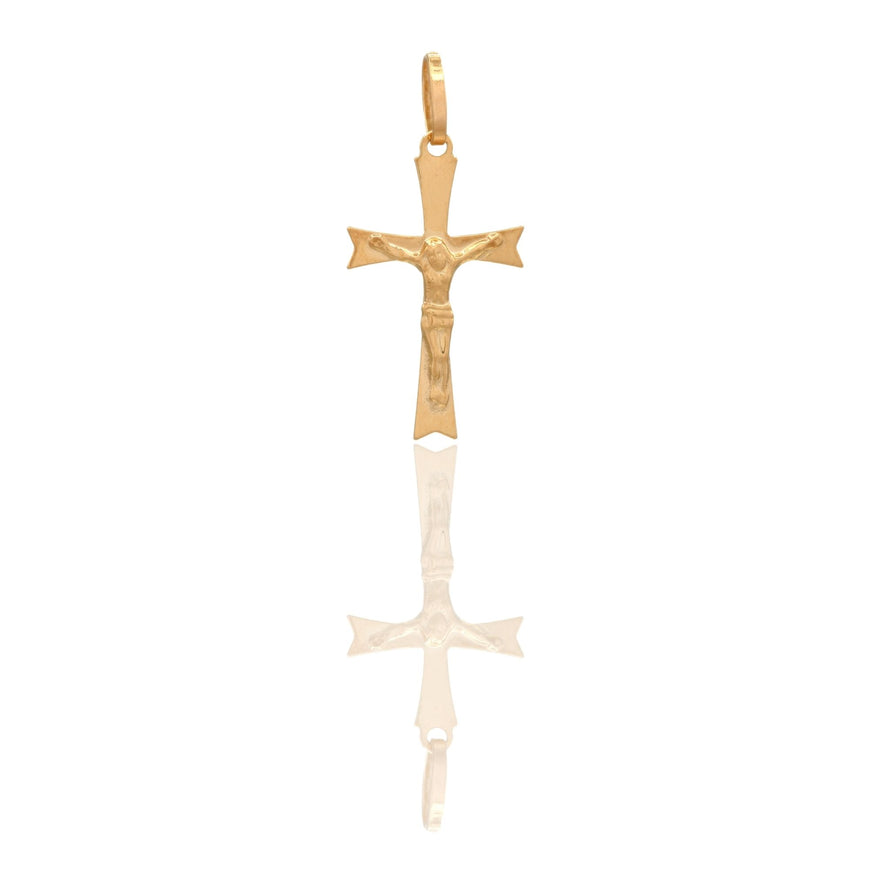 Ciondolo in oro GIALLO Oro 18 carati Croce Trifogliata Cristo Lastra Solo Oro Gr. 1