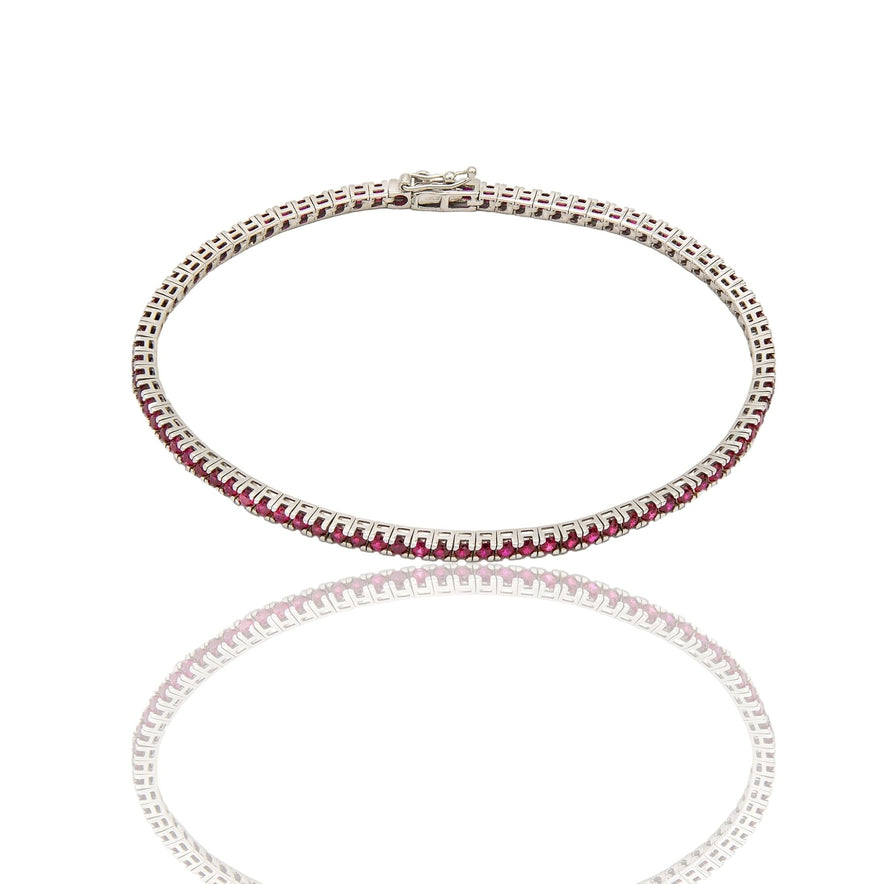 Bracciale in oro BIANCO Oro 18 carati Tennis rigido Zirconi fucsia lunghezza 20cm spessore mm 2,3 Gr. 8,25