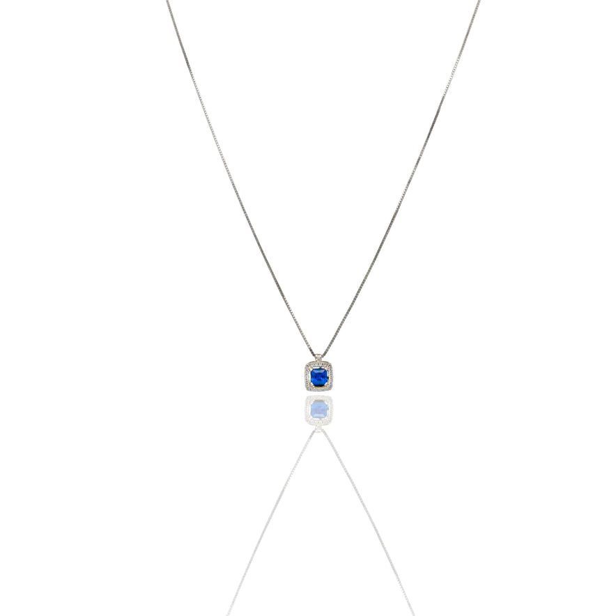 Collana in oro BIANCO Oro 18 carati Quadrato Centro E Contorno Pavè Zirconi bianchi, Zircone Blu Gr. 1,8