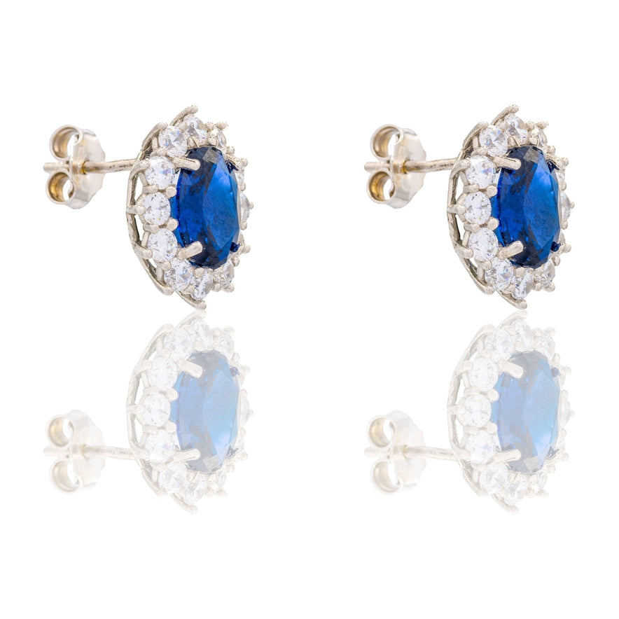 Orecchini in oro BIANCO Oro 18 carati Modello Kate Centro E Contorno Zirconi Bianchi, Zircone Blu Gr. 4