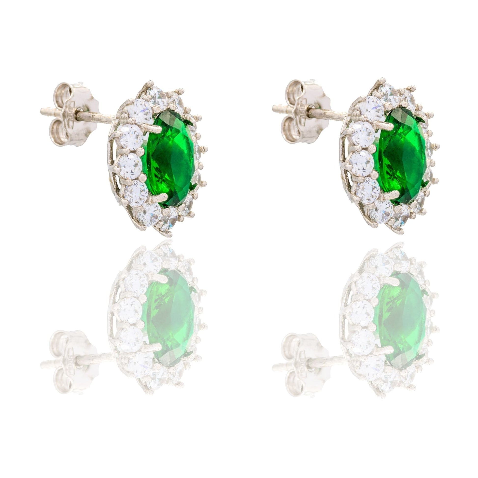 Orecchini in oro BIANCO Oro 18 carati Modello Kate Centro E Contorno Zirconi Bianchi, Zircone Verde Gr. 3,7