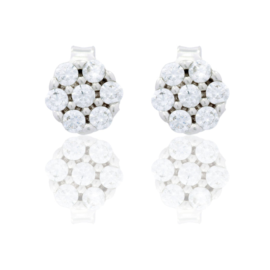 Orecchini in oro BIANCO Oro 18 carati Toppa pavè Zirconi Bianchi mm. 7 Gr. 1,8