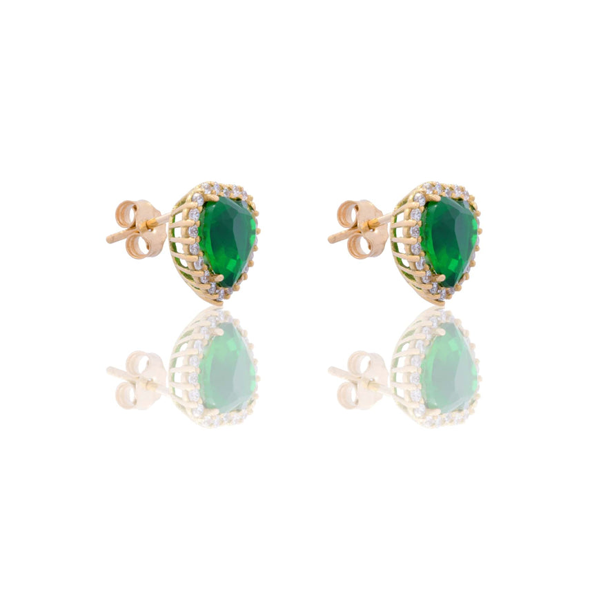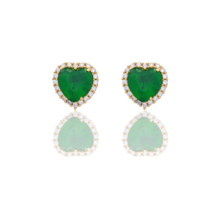 Orecchini in oro GIALLO Oro 18 carati Cuore Centro E Contorno Zirconi Bianchi, Zircone Verde Gr. 2,8