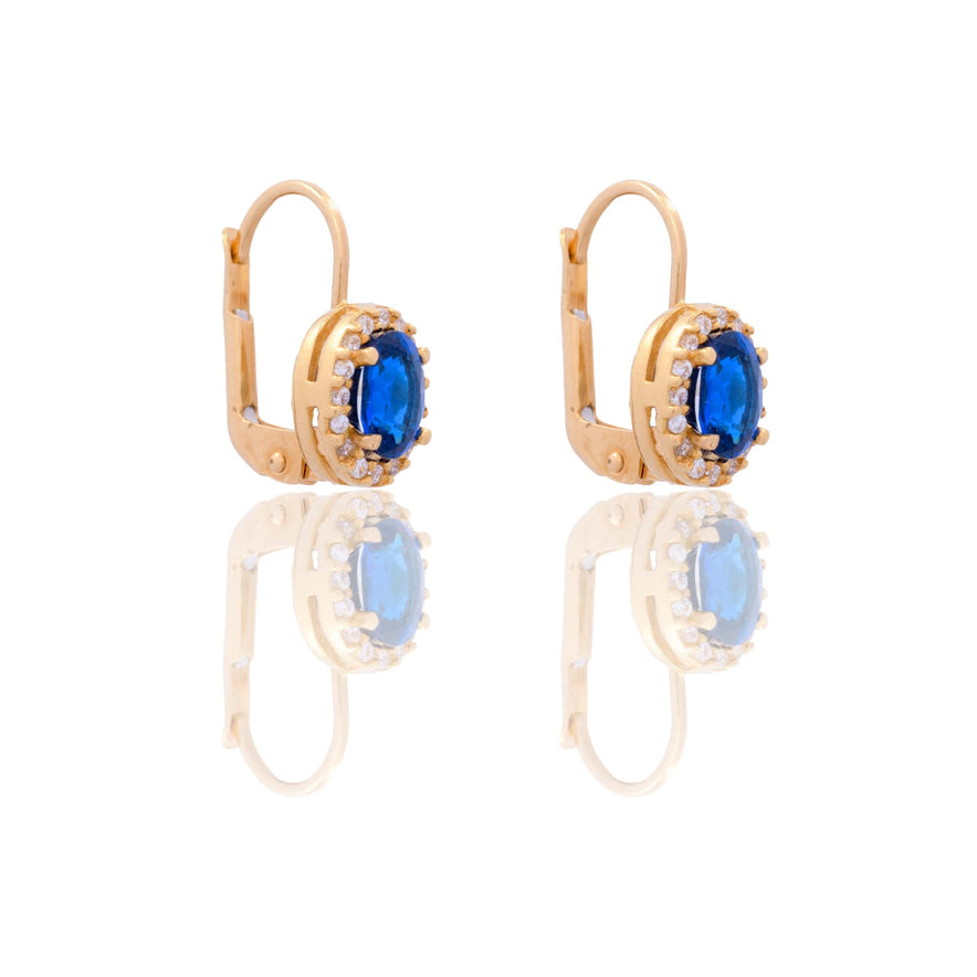 Orecchini in oro GIALLO Oro 18 carati Modello Kate Centro E Contorno Zirconi Bianchi, Zircone Blu Gr. 2,2